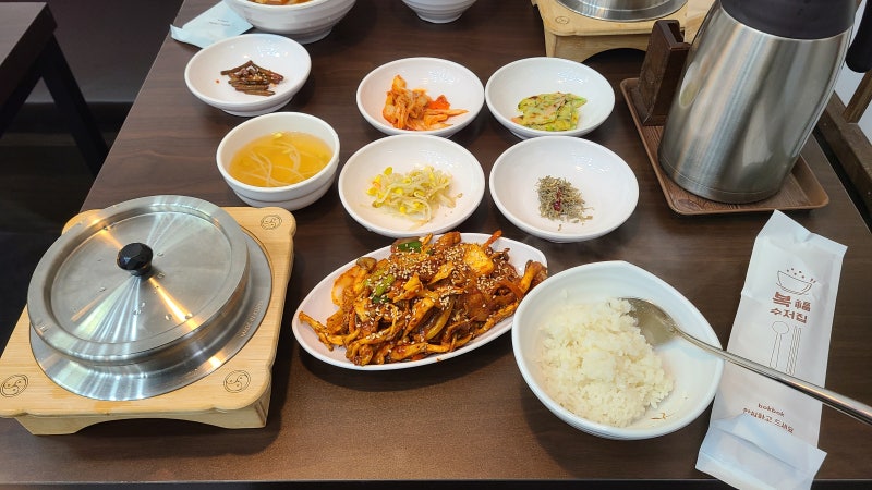 안내받은 테이블에서 메뉴판을 유심히 살펴봤습니다. 예상외로 다양한 종류의 솥밥 요리를 선보이고 있었습니다. 다양한 솥밥 요리를 맛볼 수 있는 진정한 솥밥집이었습니다. 주문을 하고 얼마 지나지 않아 반찬과 메인 요리까지 테이블에 차려졌습니다. 난 준비됐어.1. 광명역 맛집 내돈내산에서만 맛볼 수 있는 장국 등으로 식사를 시작했어요 2. 샐러드 3. 가지 솥밥 4. 소고기 돼지고기 솥밥 5. 매콤한 가지 치즈 솥밥 6. 스테이크 솥밥 7. 숭녕등 장국